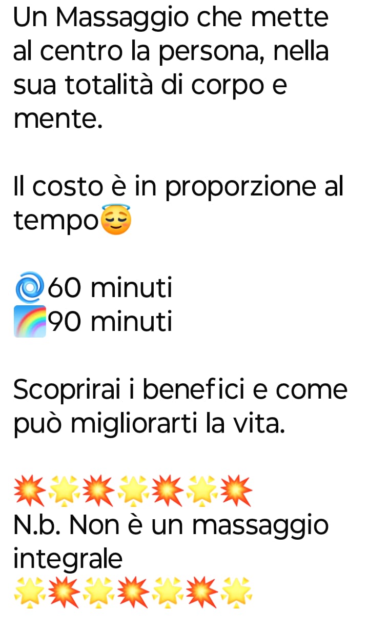 durata massaggio 60 minuti €. 60 .